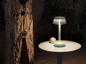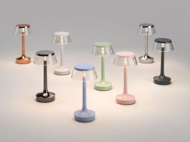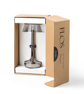 Flos Design. Philippe Starck, 2015 - F1040039 Dimensions : Ø 13,1 x h 27 cm lampe de table sans fil rechargeable fournissant une lumière directe. Corps en matériau moulé par injection et diffuseur transparent en PMMA. Source lumineuse avec technologie Edge Lighting. Autonomie de la batterie de 6/24 heures, rechargeable via USB C et Qi. Capteur optique d'allumage sur la base avec fonction de variation d'intensité à 4 niveaux et contrôle de la température de couleur sur 3 niveaux (2200K, 2700K et 3000K). Câble de charge USB-C inclus dans l'emballage, longueur utile de 120 cm.