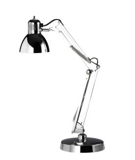 Lampe de table à éclairage direct non dimmable. Interrupteur marche/arrêt rotatif sur la tête du diffuseur. Pince réglable et corps en métal peint. Câble d'alimentation et prise noirs. Prise européenne bipolaire. Ampoule non fournie.