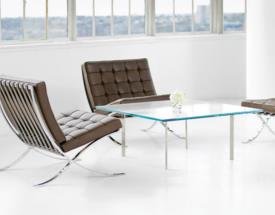 Complément parfait de la chaise Barcelona, le design de la table en chrome et verre de Mies Van Der Rohe respire un style moderne et une sophistication simple.