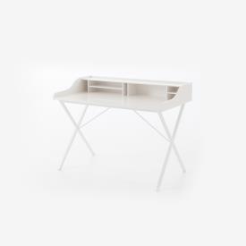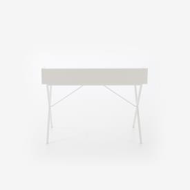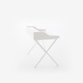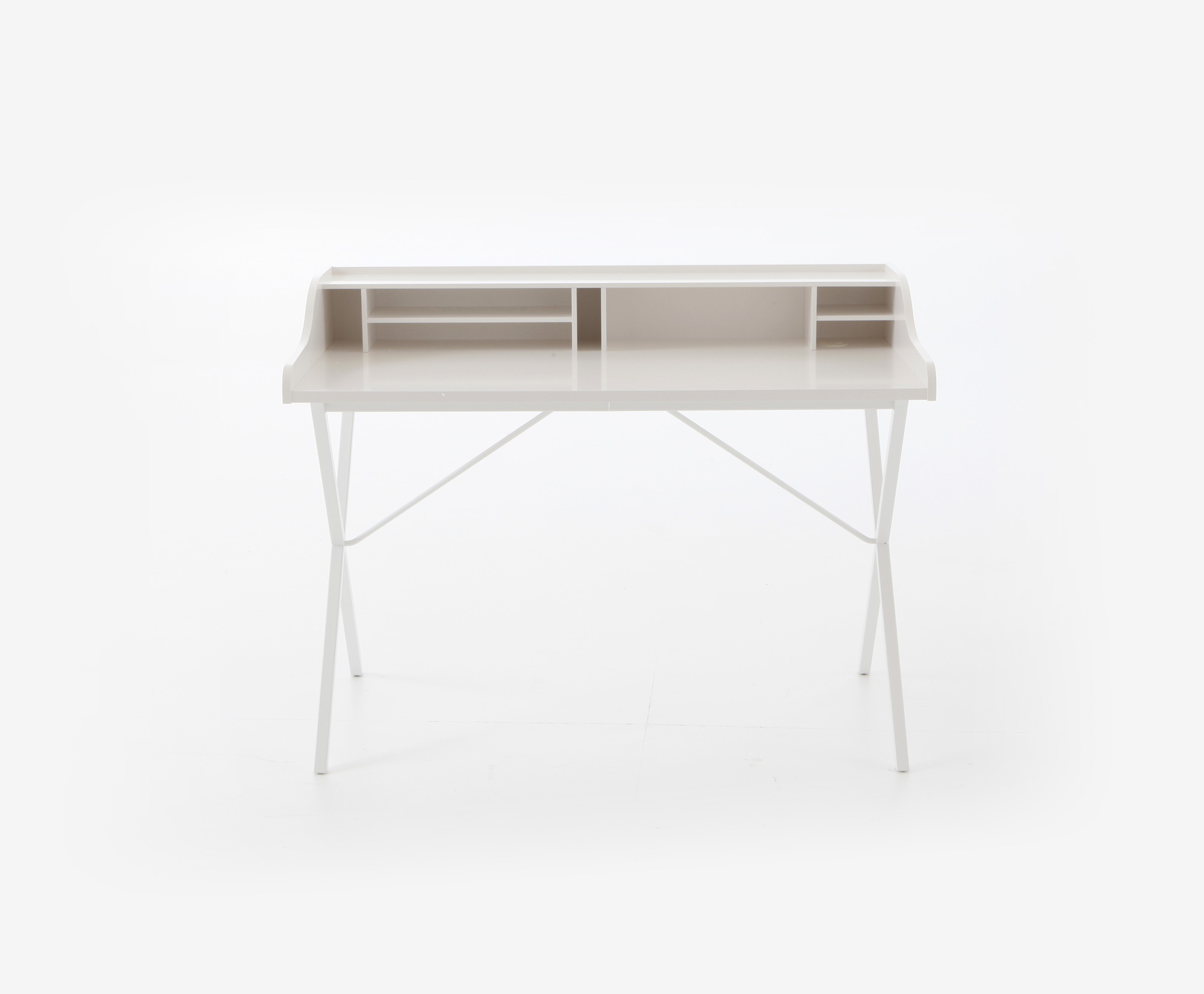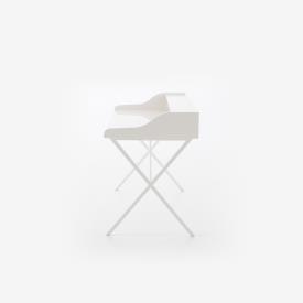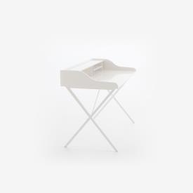 Dans la collection Ligne Roset, ce gracieux bureau d'appartement d'allure féminine complète le bureau Tanis (1954 / 2008) plus sévère et masculin. Bureau constitué d'un plateau de travail avec casiers et ceinture en panneaux de particules et medium. Piétement en croix en tube d'acier laqué Epoxy. Finition : entièrement laqué blanc satiné.