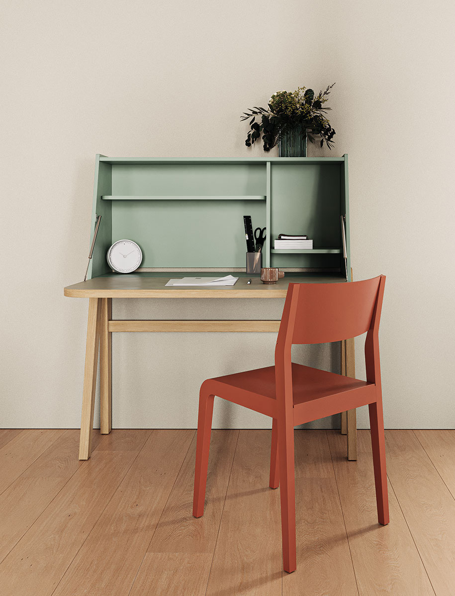 Combinant les matérieux et les couleurs avec finesse, Workin a été conçu comme un espace de travail compact. Les matériaux de grandes qualités soulignent le charme décoratif de ce petit secrétaire, dont l’élégence vient du contraste entre les lignes rigoureuses du caisson et les angles arrondis du plateaux.